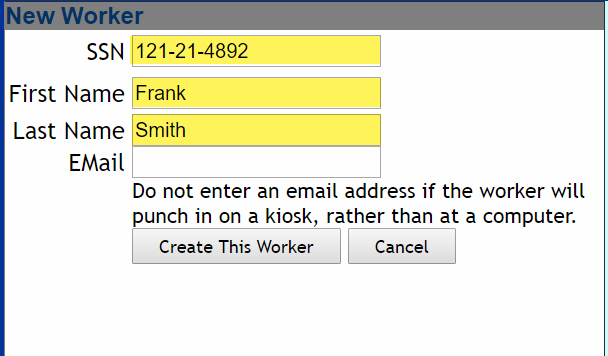 - Create a New Worker (allows you to add a new worker with a first name, last name, and SSN into the database)