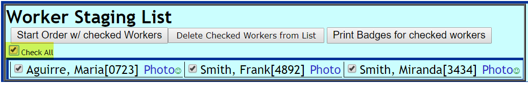 - Check the checkboxes for the workers in your staging list that meet the same criteria. If all of them meet this criteria, you can simply check the Check All box at the top to check the boxes for all of the workers.