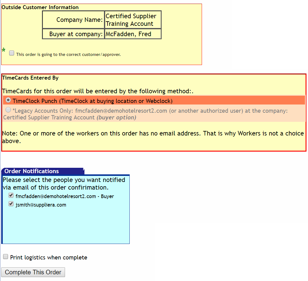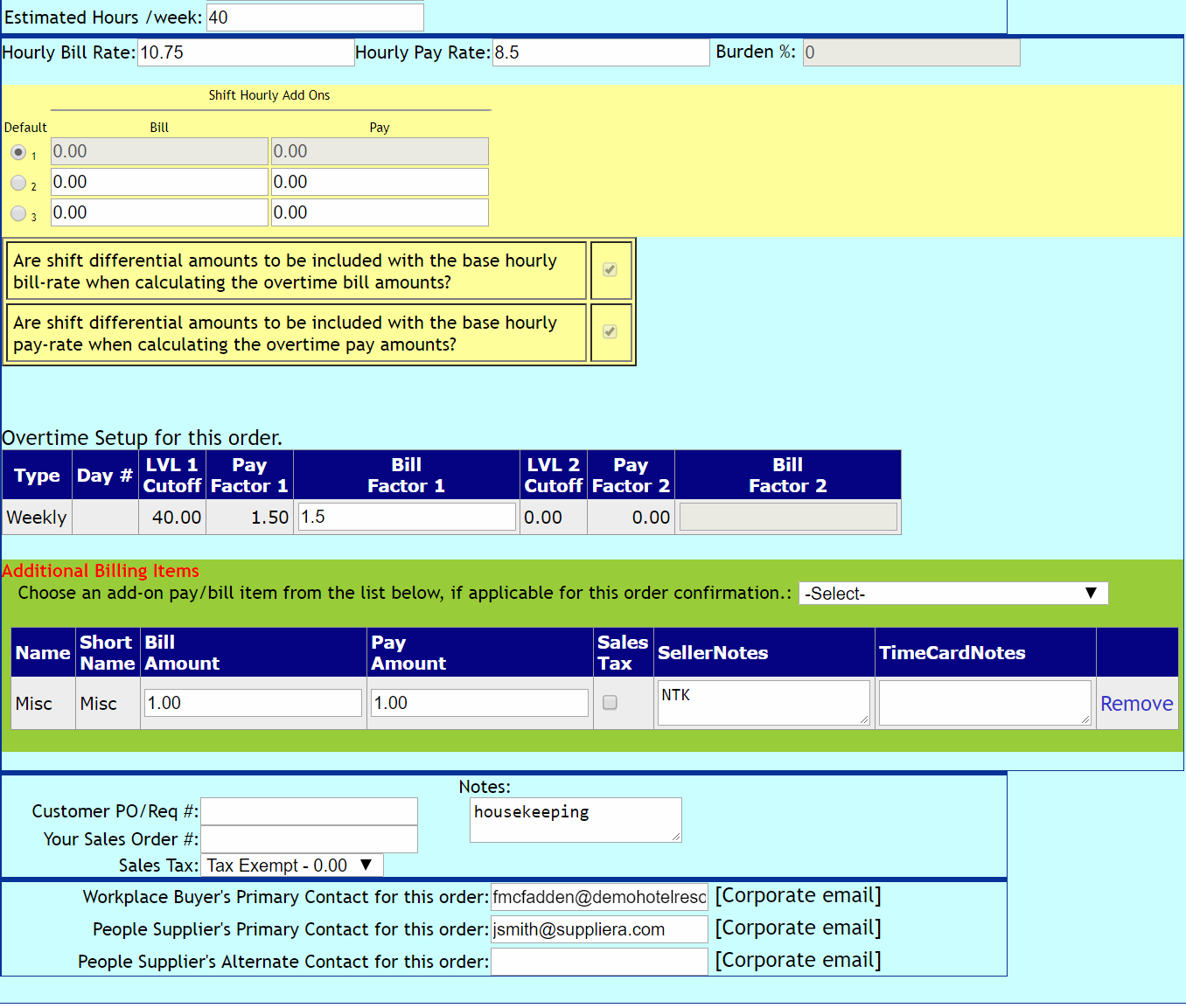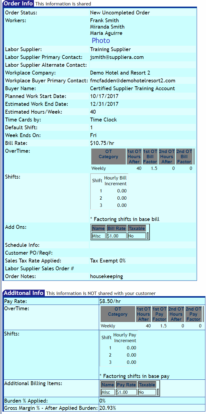 The Order Info section at the top will be displayed to your Labor Buyer.
