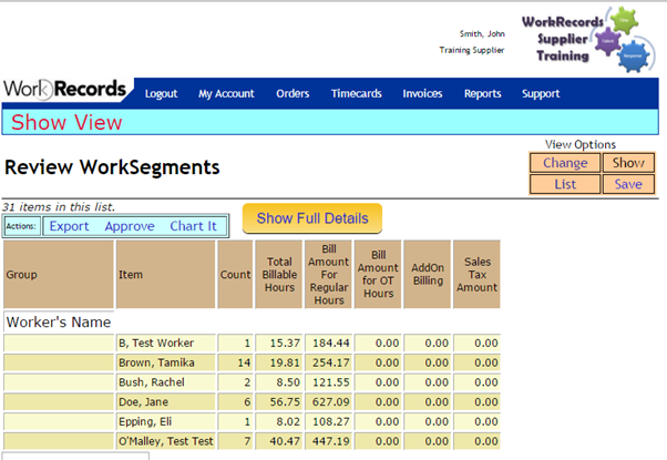 Because the agreements between Labor Buyers and Labor Suppliers vary greatly about tracking and calculating training hours, WorkRecords provides flexibility to meet all of these different needs using a combination of multiple Orders, AddOns, and adjustments. Listed below are the most common practices in use by the vast majority of our Labor Buyers and Labor Suppliers that need to adjust billing for training.