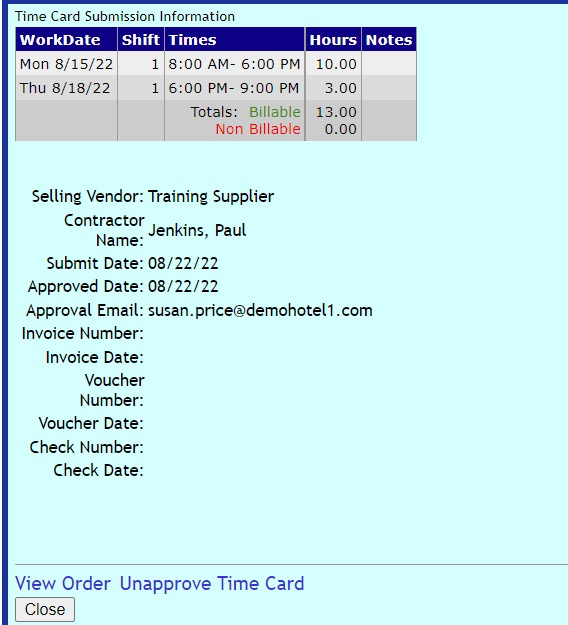 The TimeCard Unapproval link is available in several Supplier views through the TimeCard Editor or Time Card Details. We'll walk you through both options by providing step-by-step instructions and videos below.