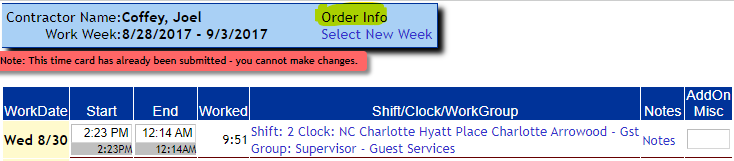 Step Two: At the top of the pop-up window, select "View Time Cards for this Order"